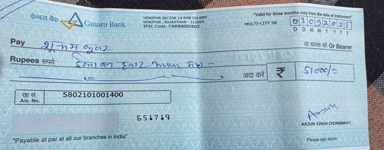 श्री राष्ट्रीय राजपूत करणी सेना की और से मिला ₹51,000 का चेक और खिलौने